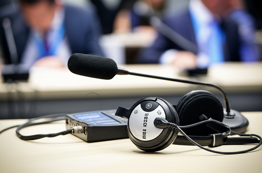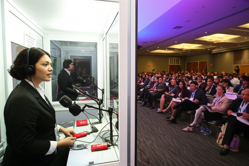 同時通訳は、話者が発言している間にリアルタイムで通訳を行う方式です。 国際会議や大規模イベントで最も一般的に使用されます。